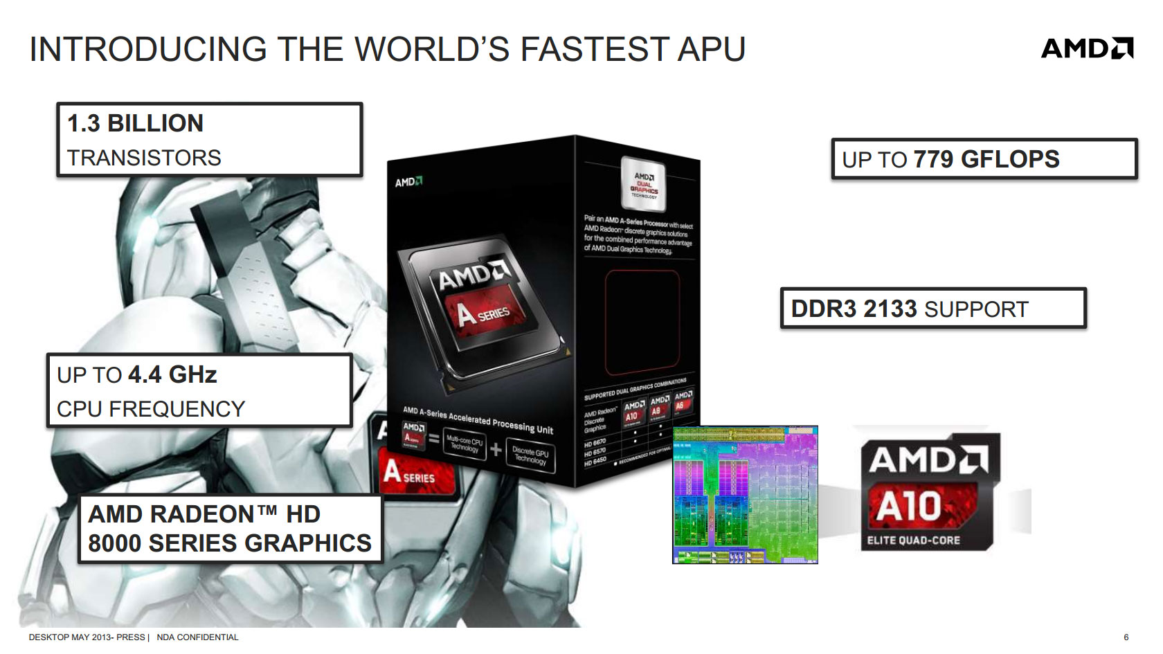 Представляя новые процессоры для платформы FM2, Advanced Micro Devices акцентирует внимание IT-общественности на их графической составляющей. Видеоядра Radeon HD 8000D обеспечивают достойную для IGP производительность в играх (DirectX, OpenGL), параллельных вычислениях (OpenCL), при обработке изображений (Adobe), а также, традиционно, аппаратное ускорение конвертации и воспроизведения видео различных форматов.