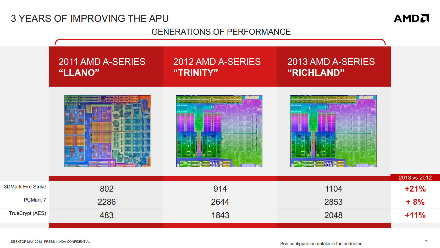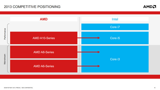 AMD не рассчитывает, что процессоры A-Series/Richland будут конкурентоспособны на фоне Intel Core i7, однако полагает, что им по силам соперничать с Core i5 и Core i3 в большинстве задач.