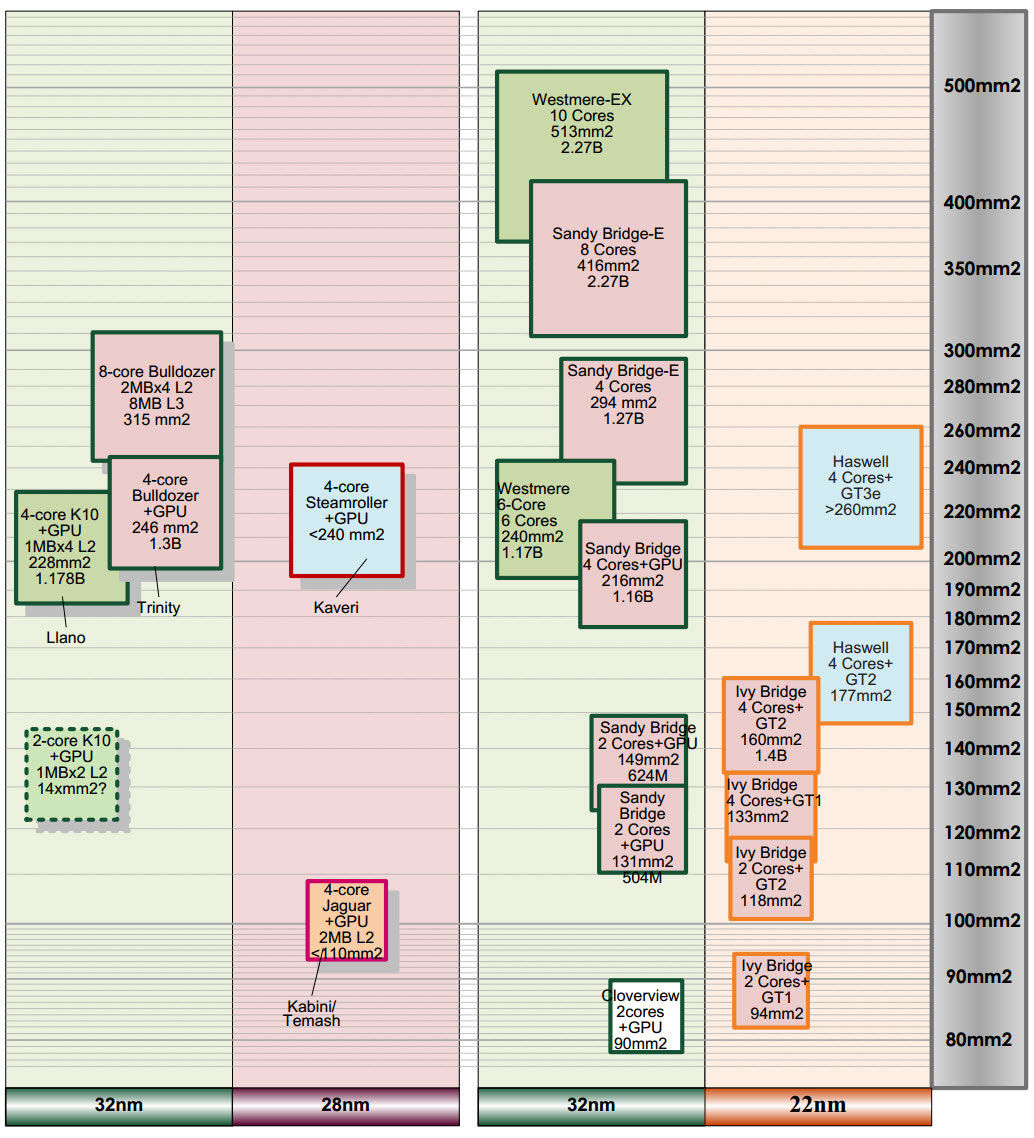Японский сайт PCWatch акцентировал внимание IT-общественности на ключевых преимуществах Kaveri относительно предшественников. Так, новые процессоры будут иметь меньшую площадь кристалла, которая составит не более 240 кв. мм (246 кв. мм у Trinity и Richland).