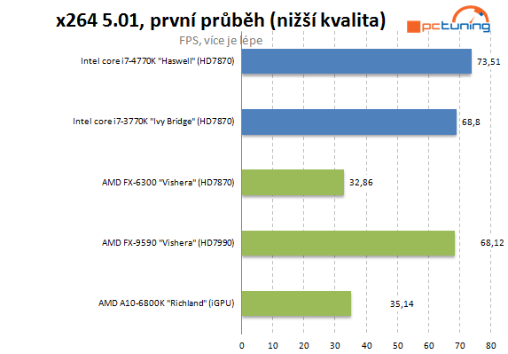 Core i7-4770K демонстрирует сопоставимую с FX-9590 производительность в шифровании данных (Aida64 CPU AES), обработке фото (Sigma Photo Pro, Zoner Studio 13) и видео (x264).