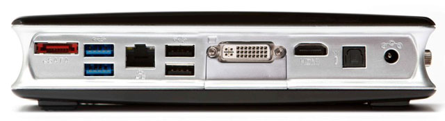 Zotac ZBox ID18 также оборудован портами eSATA 6 Гбит/с, USB 3.0 (2), USB 2.0 (4), RJ-45, видеовыходами DVI-I и HDMI, оптическим S/PDIF, гнездами для наушников и микрофона и разъемом для подключения внешнего блока питания.