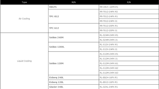 Первой о поддержке топовых процессоров FX/Vishera отрапортовала компания Cooler Master: три воздушных и шесть жидкостных кулеров тайваньского вендора способны рассеивать как минимум 220 Вт тепловой мощности. В список были включены системы охлаждения с испарительной камерой в основании (V8 GTS, TPC-812, TPC-612), а также модели СВО для массового рынка со 120-мм и 240-мм радиаторами (Seidon 240M, Seidon 120XL, Seidon 120M, Eisberg 240L, Eisberg 120L, Glacier 240L).