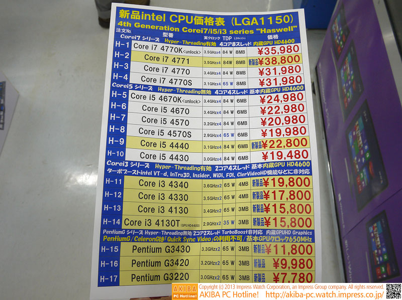 - Core i3-4130: 15800 йен ($161);