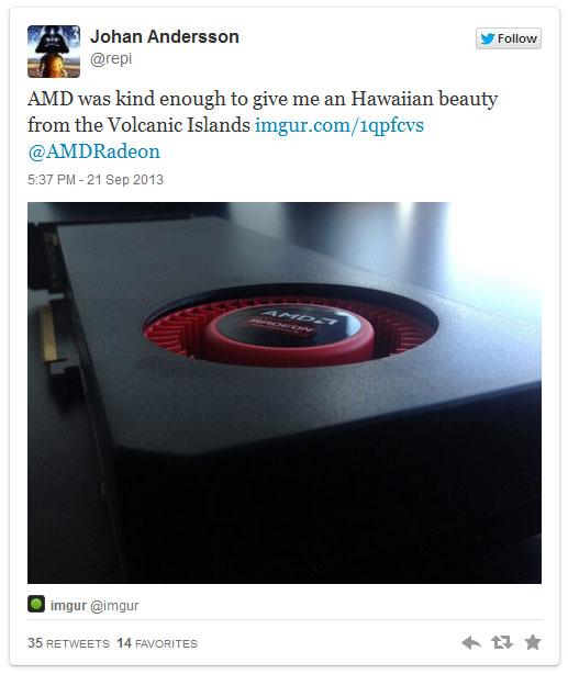 Предполагаемые характеристики Radeon R9 290X впечатляют: 2816 потоковых процессоров, 512-битная шина памяти, 4 ГБ GDDR5! Однако ранее вице-президент AMD Мэтт Скиннер говорил, что Nvidia GK110 будет на 30% больше Hawaii, а значит площадь кристалла R9 290X составит около 420—425 кв. мм, и в него вряд ли можно «втиснуть» еще два 64-битных контроллера памяти (т. е. расширить шину памяти с 384 до 512 бит) и на 37,5% больше потоковых процессоров. Так или иначе, до 25 сентября любые гипотезы имеют право на жизнь, в том числе и эта.