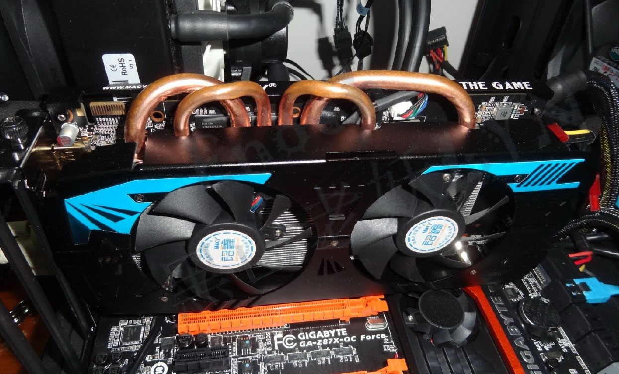 В руки китайских энтузиастов PCEVA попал видеоускоритель GeForce GTX 750 Ti марки Macy. Модель имеет внушительного вида двухслотовый кулер на четырех тепловых трубках и один разъем SLI. Помимо 960 шейдеров и шины памяти разрядностью 256 бит, карта располагает 80 текстурными блоками (TMU), 32 блоками растеризации (ROP), 2 ГБ ОЗУ стандарта GDDR5 и работает на частотах 1033(1098)/6008 МГц для ядра и микросхем памяти соответственно.