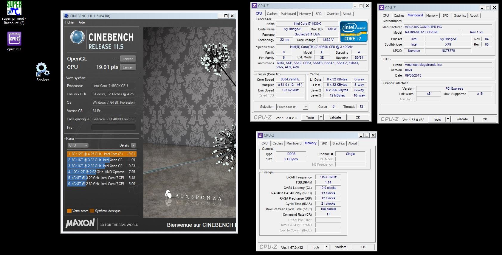 Француз Wizerty, долгое время претендовавший на победу в оверклокерском чемпионате ASUS Open Overclocking Cup 2013 совместно с соотечественником StrategosSan, установил абсолютный рекорд в тесте Cinebench R11.5 для настольных процессоров — 19,01 очка. Стоит отметить, что Wizerty использовал не топовый процессор Intel Core i7-4960X, а более скромный Core i7-4930K, и вместо заводского испарителя для жидкого азота (как правило, марки KingpinCooling) задействовал самодельный «стакан».