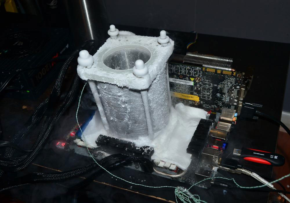 Частота шестиядерного Core i7-4930K в ходе бенч-сессии достигала отметки 6304 МГц (при напряжении 1,63 В), 2 ГБ модуль оперативной памяти работал в режиме DDR3-2308. Эксперименты с «камнем» архитектуры Ivy Bridge-E проводились на плате Asus Rampage IV Extreme (чипсет X79). Стенд был запитан от блока Corsair AX1200 серии Professional.