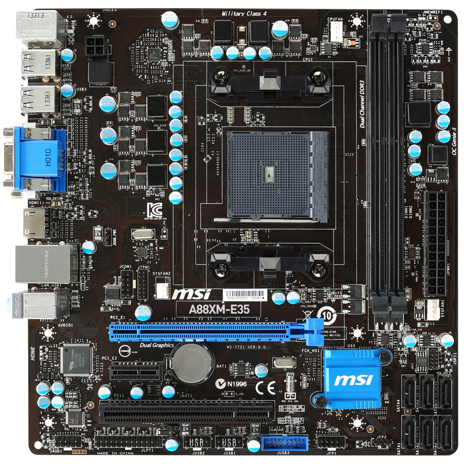 Одна из моделей, MSI A88XM-E35, числится не только в прайс-листах, но и уже поставляется западноевропейским покупателям, которые в будущем рассчитывают произвести апгрейд процессора. Для новинки характерны технологии Military Class 4, OC Genie 4, наличие Click BIOS 4, поддержка трех мониторов и разрешений вплоть до 4K UHD (2160p).