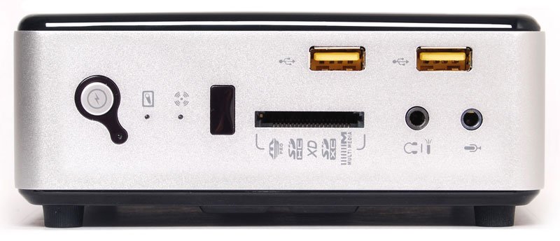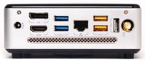 В миниатюрном корпусе толщиной около 4 см нашлось место для адаптера Wi-Fi (802.11ac + Bluetooth 4.0), мультиформатного картридера «7 в 1», материнской платы с разъемами SO-DIMM DDR3 (до 8 ГБ ОЗУ), SATA 6 Гбит/с, USB 3.0 (2), USB 2.0 (5), DisplayPort, HDMI и 7.1-канальным аудиокодеком. В версии AQ01 Plus новинка комплектуется жестким диском объемом 500 ГБ (5400 об/мин) и 4 ГБ памяти SO-DIMM DDR3-1600.