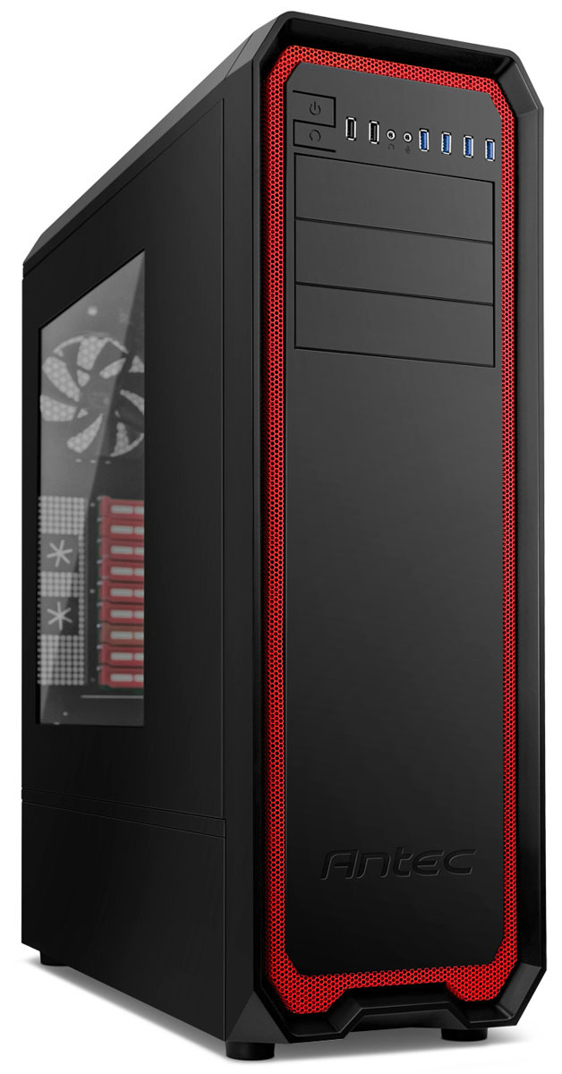 Высота корпуса составляет 696 мм, длина — 555 мм, ширина — 223,6 мм. Толщина стенок и масса Nineteen Hundred в спецификации не значатся. Длина видеокарт может достигать 330 мм, высота CPU-кулера — 175 мм. Разумеется, у владельцев Antec Nineteen Hundred будут широкие возможности по установке радиаторов СВО и корпусных вентиляторов типоразмера 120 мм. Последних в комплекте поставки, кстати, насчитывается целых шесть, и все они основаны на гидродинамическом подшипнике: три вентилятора закреплены на передней панели, два на верхней и один на задней.