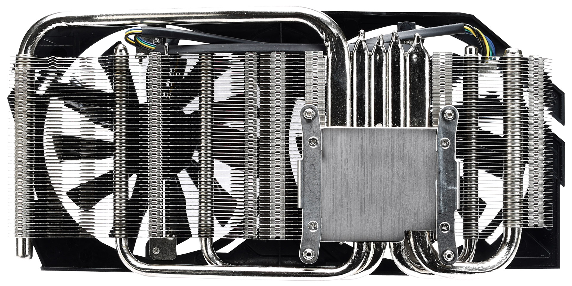 Кулер содержит пять медных никелированных тепловых трубок различного диаметра и пару 100-мм вентиляторов. Формально он рассчитан на охлаждение видеокарт с тепловым пакетом до 450 Вт.