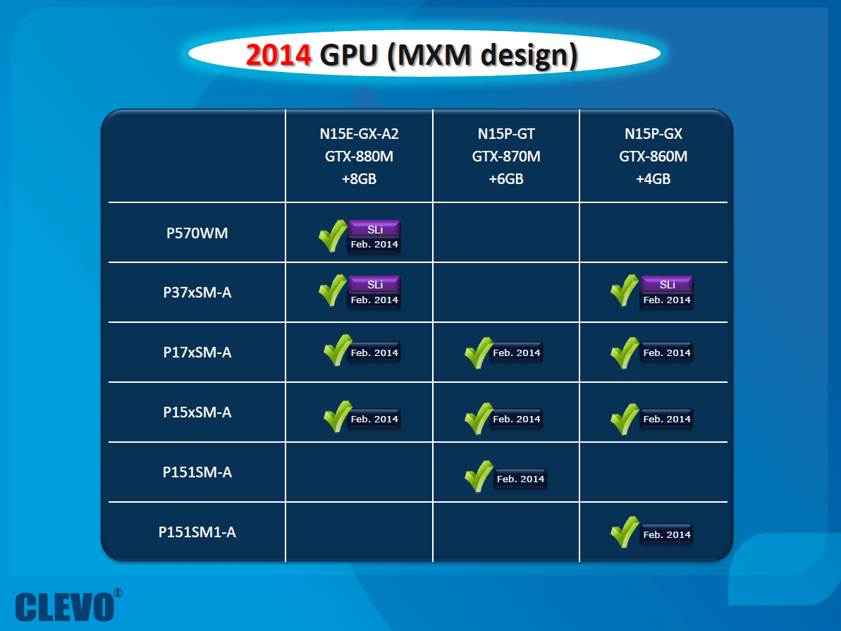 Clevo оснастит ноутбуки с GeForce GTX 880M восемью гигабайтами оперативной памяти, а мини-ПК с GTX 870M — шестью гигабайтами SO-DIMM DDR3.