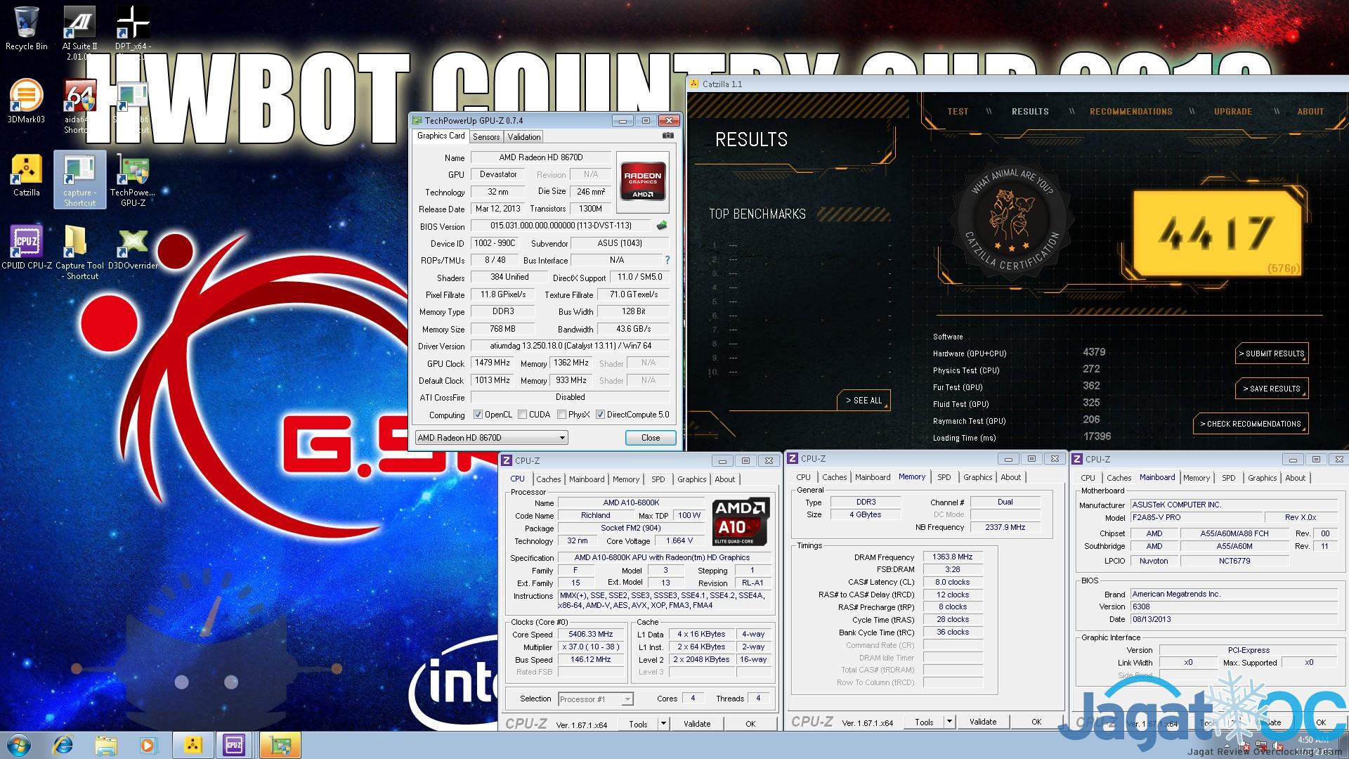 Лучший результат для встроенного GPU Radeon HD 8670D (AMD A10-6800K) в тесте Catzilla 576p показал индонезиец bboyjezz — 4417 очков.