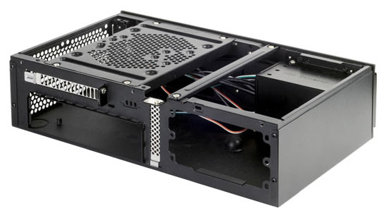 SilverStone ML06 позволяет разместить внутри себя материнскую плату форм-фактора Mini-ITX (170 x 170 мм), процессорный кулер высотой до 70 мм, одну видеокарту шириной до 75 мм, блок питания стандарта SFX длиной до 140 мм, тонкий оптический привод, четыре 2,5-дюймовых HDD/SSD и три вентилятора: один 120-мм на верхней панели и два 80-мм на одной из боковых (покупаются отдельно).