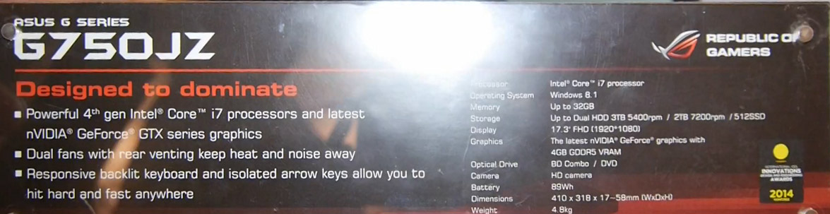 Компанию карте GeForce GTX 880M в мобильной системе AsusROGG750JZ составляет четырехъядерный процессор IntelCorei7-4700HQ. Кроме того, ноутбук оборудован 32 ГБ оперативной памяти, двумя 256-гигабайтными SSD-накопителями и 17,3-дюймовой FullHD матрицей. Модель G750JZ работает под управлением операционной системы Windows 8.1 (64-бит).