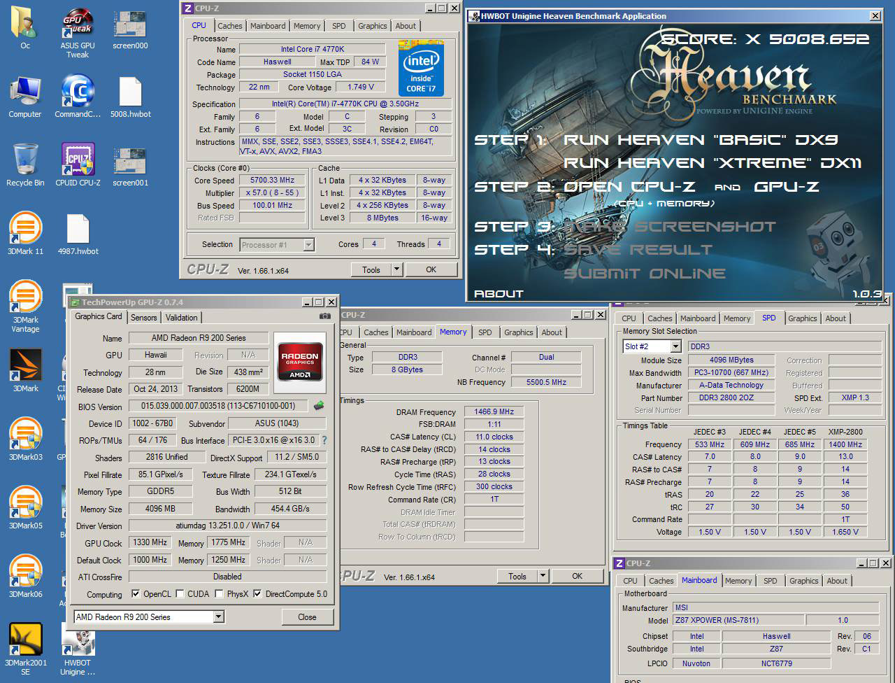 Безоговорочному на сегодняшний день лидеру HWBot Overclockers League также покорилась вершина в бенчмарке Unigine Heaven (предустановка Xtreme). Он первым преодолел психологический барьер в пять тысяч очков, набрав X5008,652. Для достижения высоких результатов в данном тесте sofos1990 задействовал материнскую плату MSI Z87 XPower и процессор Intel Core i7-4770K (@5700 МГц).