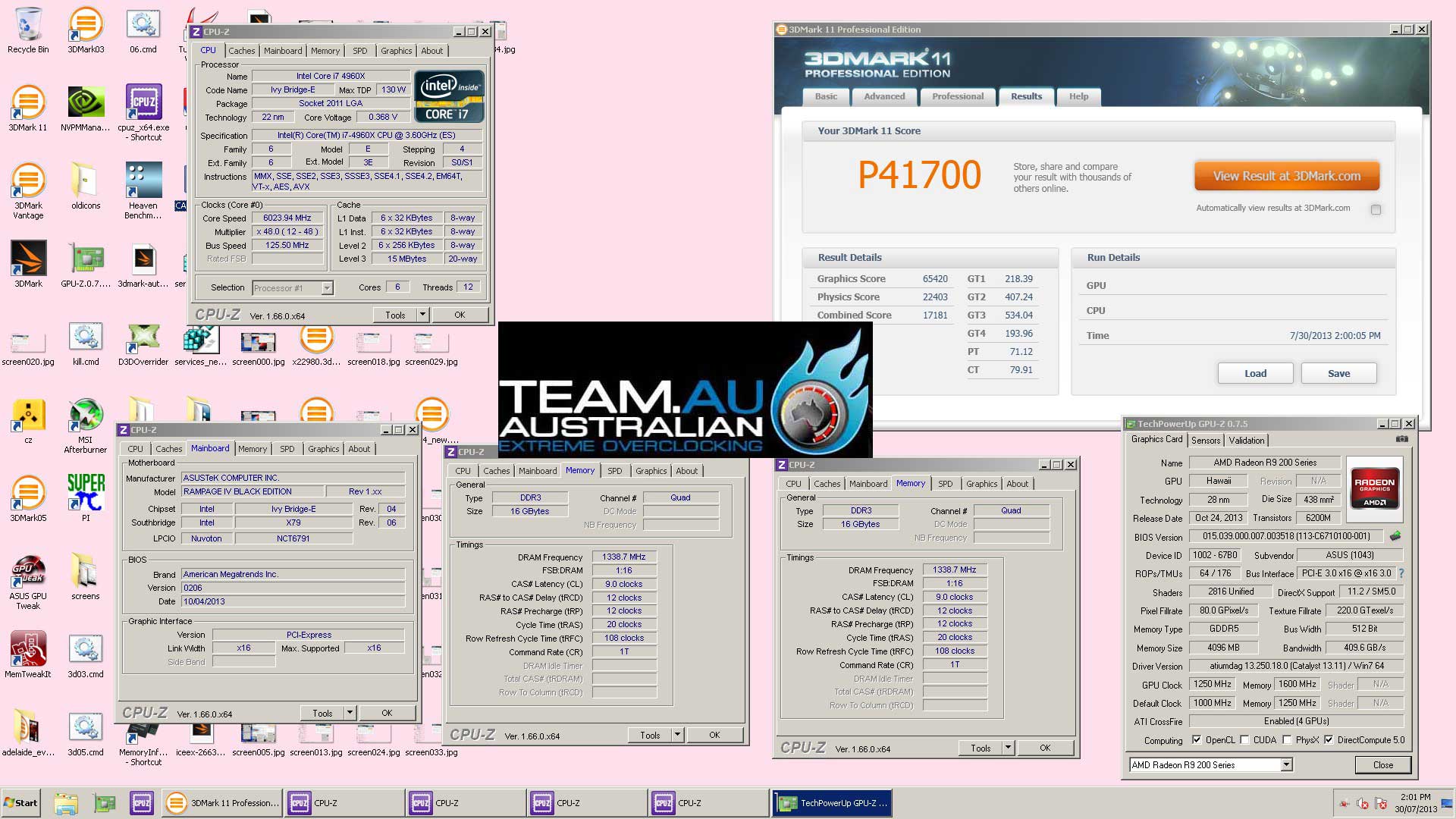 Для бенч-сессии понадобилось всего пять литров жидкого азота, поскольку испаритель для LN2 был закреплен только на CPU, а квартет графических ядер охлаждался при помощи СВО. Частота Core i7-4960X в итоге достигла отметки 6024 МГц, видеокарты были разогнаны с 1000/5000 МГц до 1250/6400 МГц. В состав стенда также вошли: материнская плата Asus Rampage IV Black Edition (чипсет X79), блоки питания Corsair AX1200 и AX1200i, четыре 4-гигабайтных модуля оперативной памяти Corsair Dominator Platinum DDR3 @2677 МГц, самодельный температурный датчик и... бытовой вентилятор.