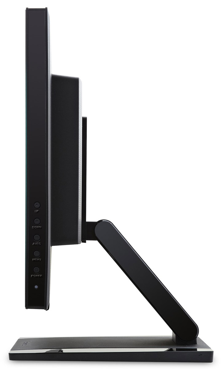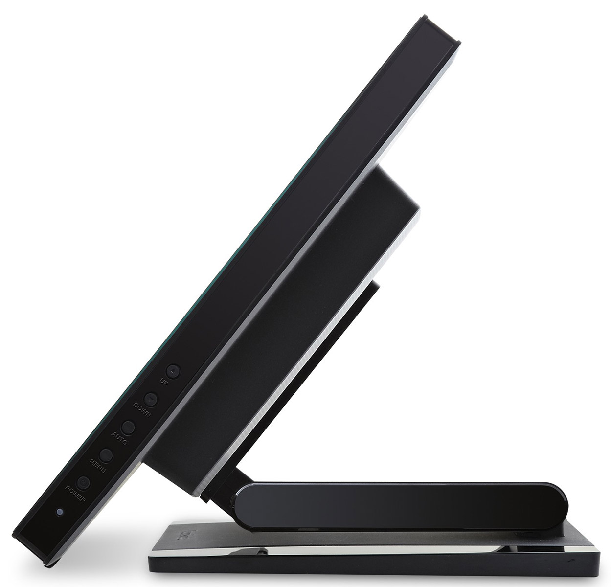 Экран монитора имеет толстую рамку, что делает его похожим на большой планшет. Сенсорный слой матрицы способен отслеживать до 10 нажатий одновременно, а покрытие с жесткостью 7H снижает риск механического повреждения экрана. Штатное разрешение дисплея ViewSonic TD2240 составляет 1920 x 1080 точек, углы обзора — 178° по горизонтали и столько же по вертикали. Уровень статической контрастности достигает 3000 к 1, уровень яркости — 200 кд/м². Продукт универсальным не назовешь, поскольку время отклика в 25 мс не позволит комфортно играть в динамичные игры.