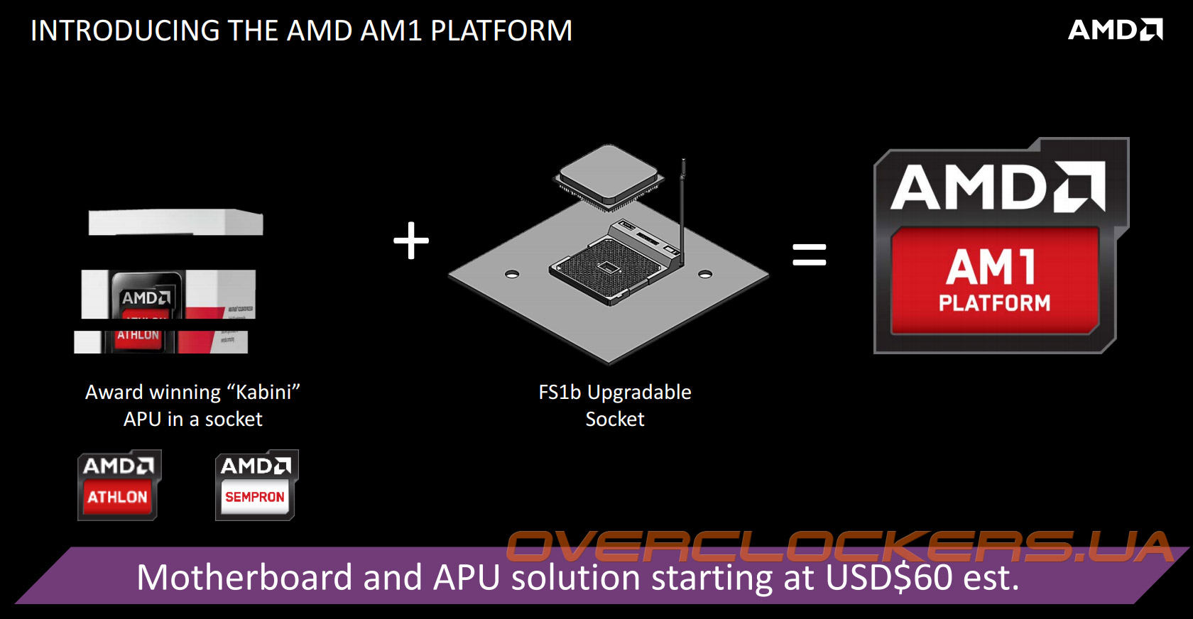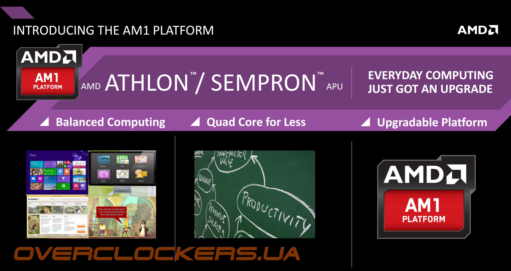 Сегодня компания AMD анонсировала скорое начало поставок материнских плат и процессоров (SoC) AM1. Они лягут в основу компактных компьютерных систем начального уровня — HTPC, домашних и офисных ПК, на которые не возлагаются сколько-нибудь серьезные задачи.