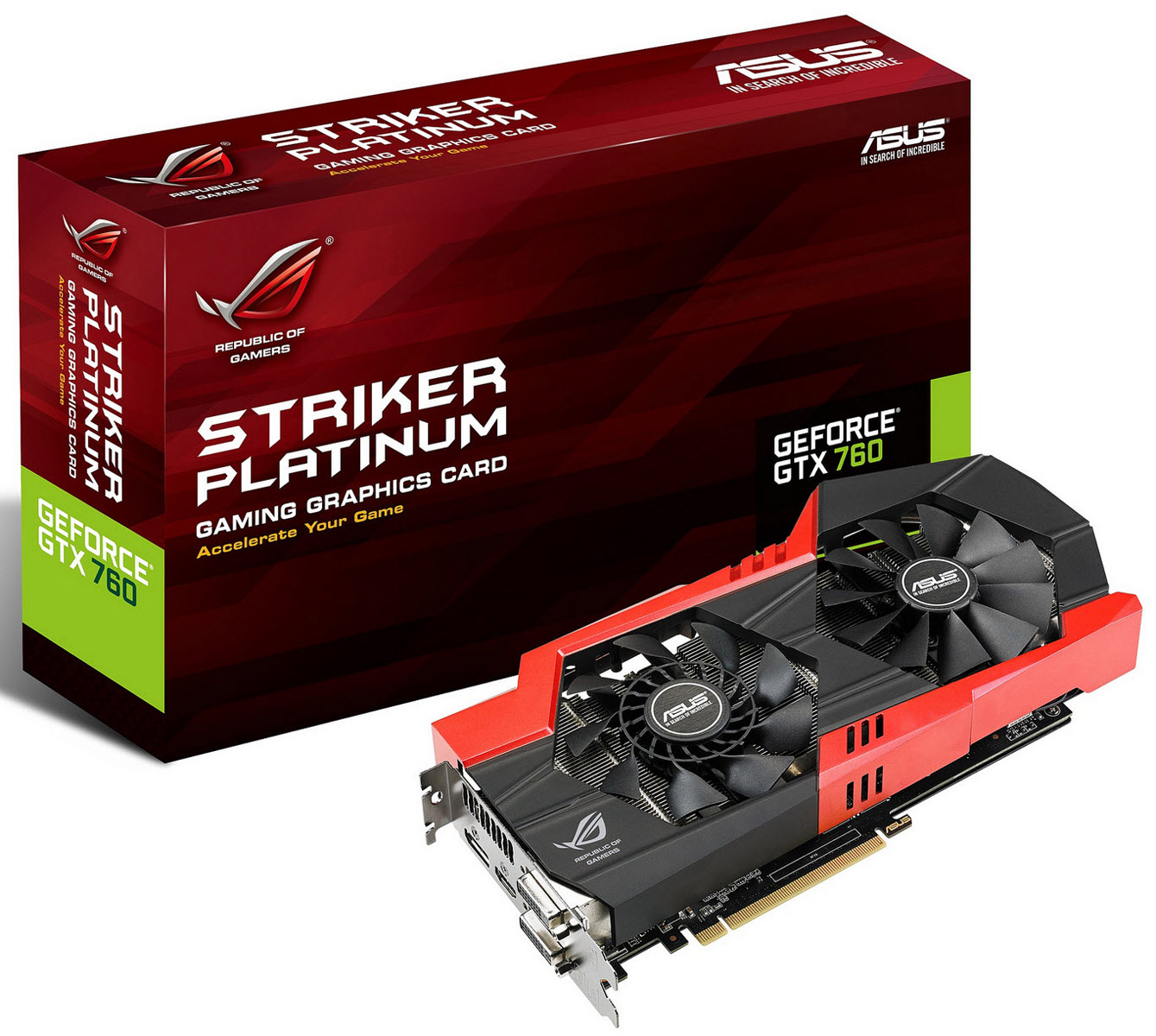 В ближайших планах корпорации Asus значится выпуск видеокарты ROG Striker GTX 760 Platinum — оверклокерского варианта модели GeForce GTX 760. Поводом вернуться к основательно подзабытому имени Striker, вероятно, стало снижение интереса геймеров к картам Kepler после релиза GeForce GTX 750/750 Ti. Продукт адресован тем, кто хочет выжать все соки из ядра GK104-225-A2 и при этом сохранить акустический комфорт.
