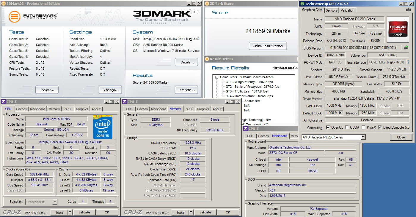 Популярность оверклокерских состязаний HWBot растет, и, соответственно, расширяется география участников. Энтузиаст разгона Moonman из Словении (родина сотен full-cover водоблоков EK) отличился тем, что смог разогнать видеокарту Asus Radeon R9 290X до впечатляющих 1540/7200 МГц для ядра и памяти, использовав жидкий азот. На этой частоте был пройден с рекордным результатом 5504,903 очка бенчмарк Unigine Heaven (в режиме DirectX 11), а на 1500/7200 МГц — тест 3DMark03, в котором Moonman смог занять четвертое место с 241859 очками. Словенца, очевидно, подвел не слишком мощный процессор Intel Core i5-4670K (5,7-5,8 ГГц), охлаждавшийся с помощью одноступенчатой системы фазового перехода («фреонки»).