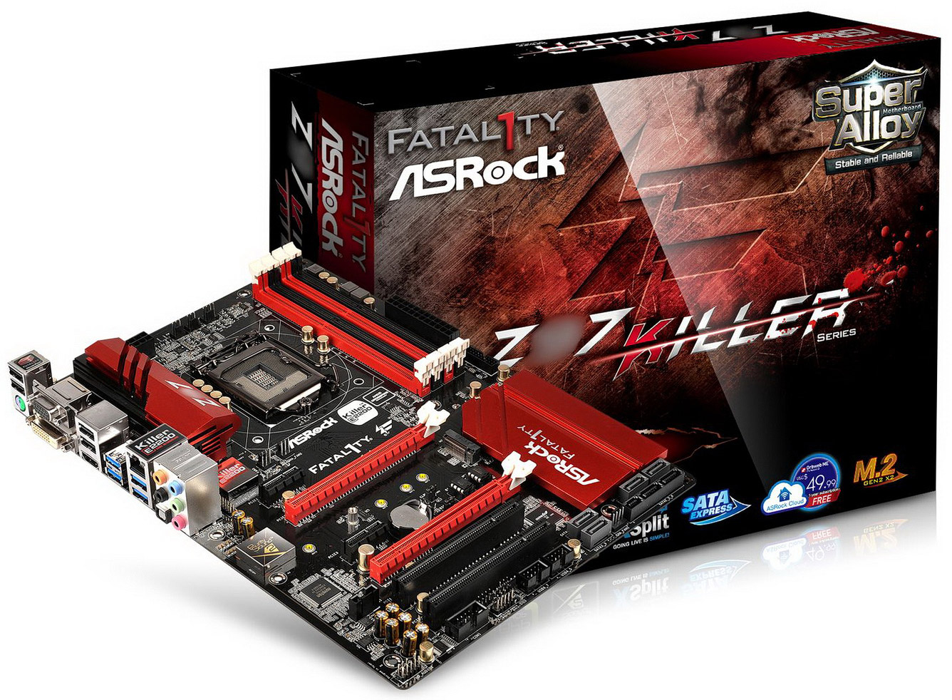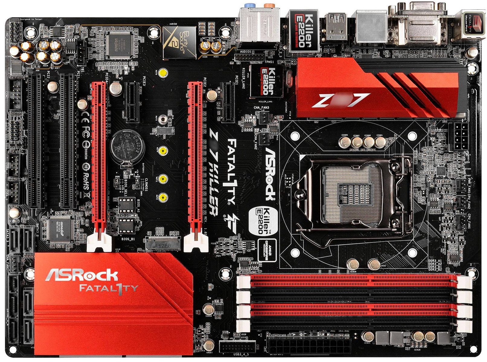 Материнская плата Fatal1ty Z*7 Killer располагает тем же набором геймерских «примочек», в остальном же ее возможности достаточно скромны. Так или иначе, присутствие разъема LGA1150, четырех слотов для модулей ОЗУ DDR3, пары PCI-E 3.0 x16, шести портов SATA, разъемов SATA Express и M.2 позволит построить и разогнать мощный ПК.