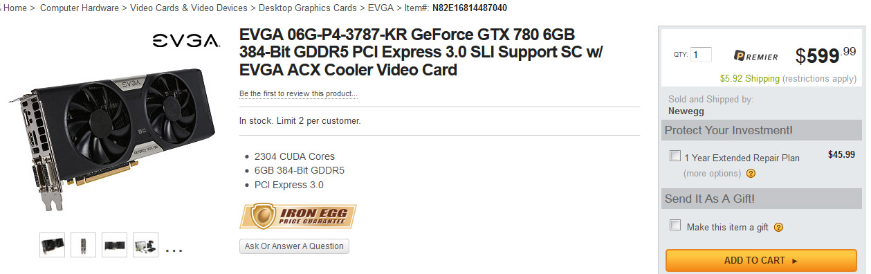 На стороне GeForce GTX 780 6GB SC ACX — трехлетняя гарантия, поддержка технологий Nvidia SLI, 3D Vision, Surround, Adaptive Vertical Sync, PureVideo HD, алгоритмов сглаживания FXAA и TXAA. Используемый кулер состоит из медного никелированного основания, пяти медных никелированных тепловых трубок, автономных секций алюминиевых ребер и пары 92-мм вентиляторов на двойном подшипнике качения.