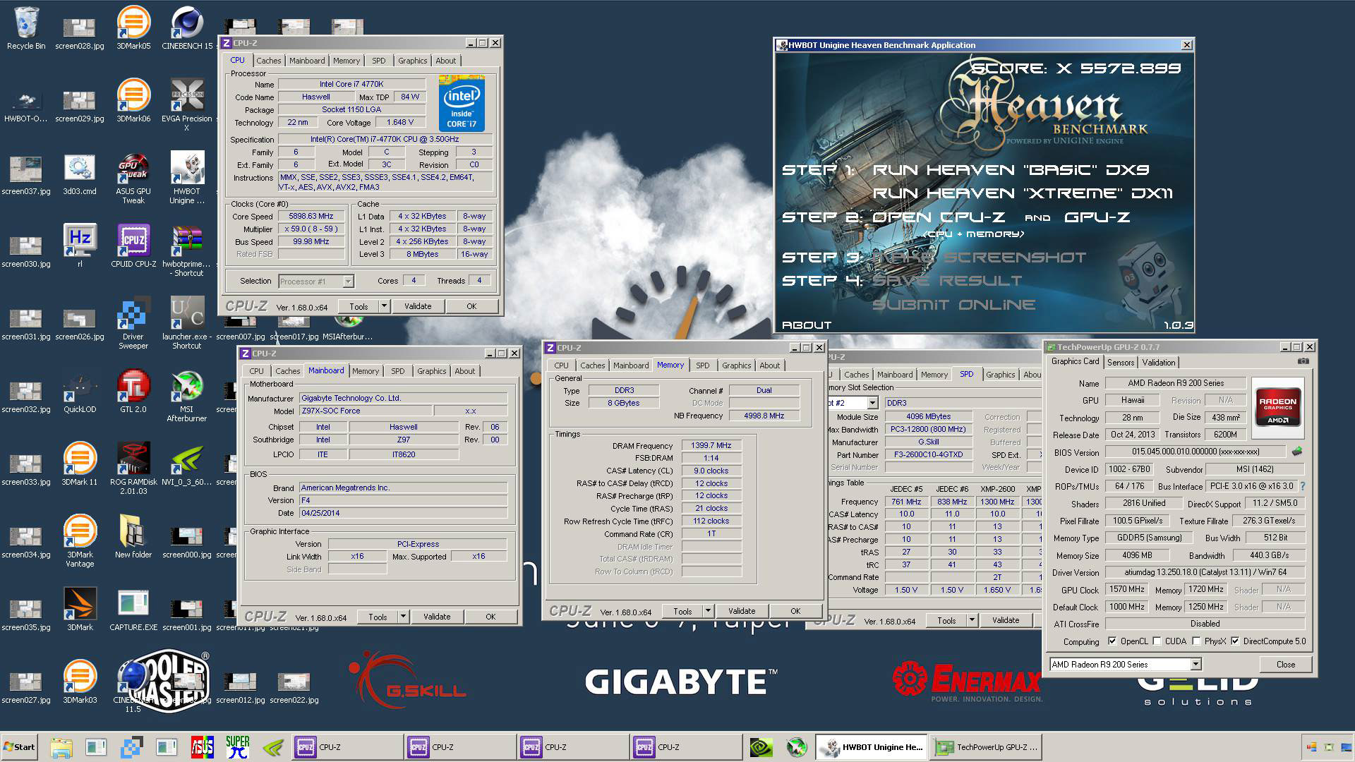 5572,899 очка. В его распоряжении были: видеокарта MSI Radeon R9 290X Lightning @1570/6880 МГц, процессор Intel Core i7-4770K @5900 МГц, материнская плата Gigabyte GA-Z97X-SOC Force и комплект оперативной памяти G.Skill TridentX DDR3 @2800 МГц.