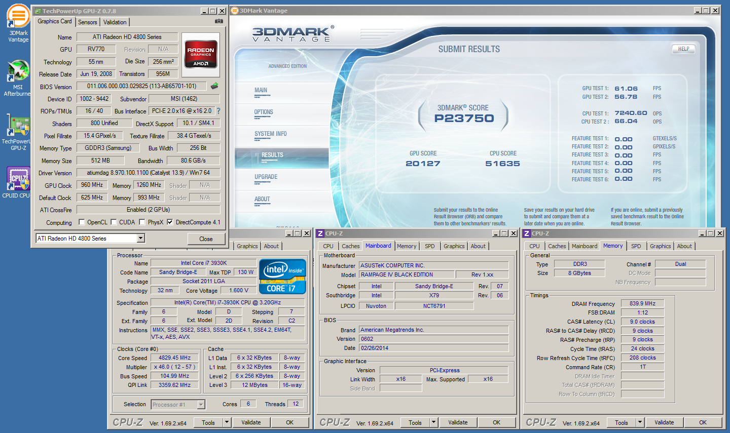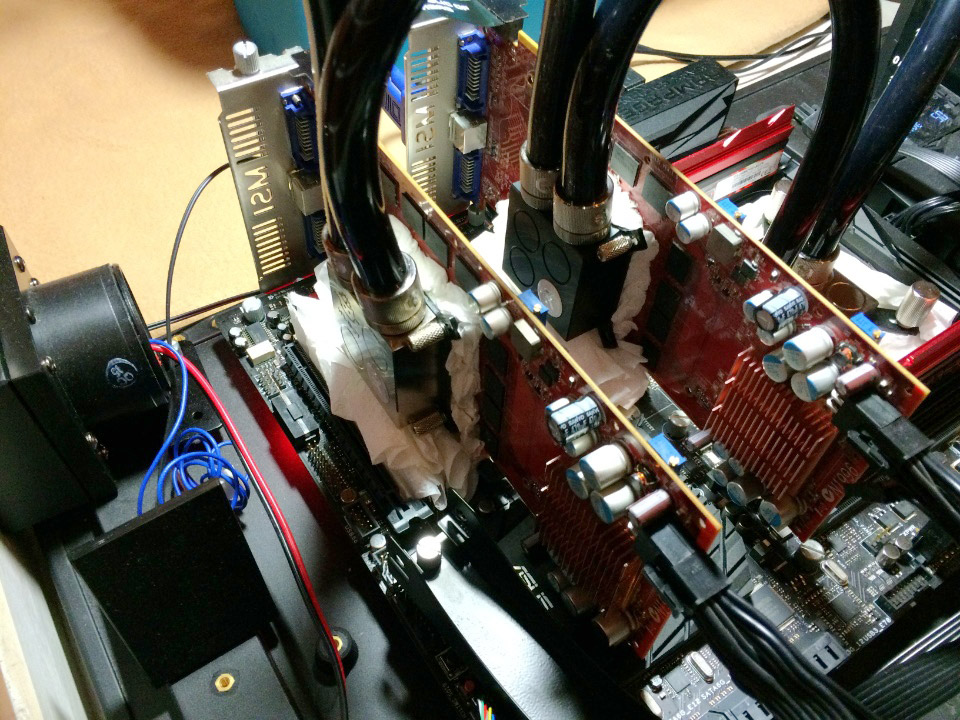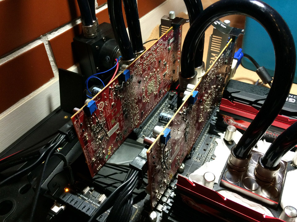 Холодную воду и водоблоки марки EK в качестве альтернативы экстремальным средствам охлаждения использовал и Sergii.ua, устанавливая рекорд среди CrossFire-конфигураций из двух Radeon HD 4850 GDDR3 в бенчмарке 3DMark Vantage. Его результат — 23750 очков (предустановка Performance). В системе были задействованы: материнская плата Asus Rampage IV Black Edition (чипсет X79), шестиядерный процессор Intel Core i7-3930K (@5,15 ГГц), две видеокарты MSI Radeon HD 4850 (@960/2520 МГц) и оперативная память G.Skill DDR3.