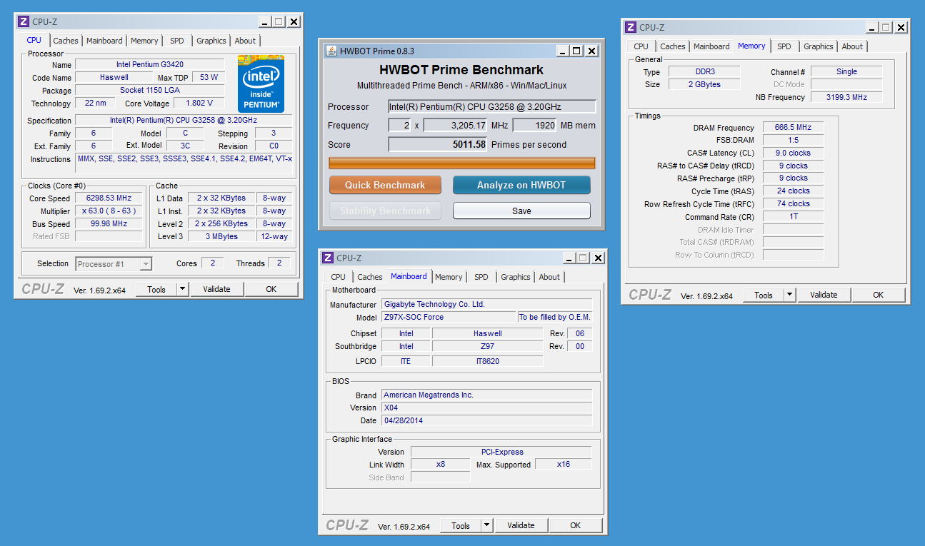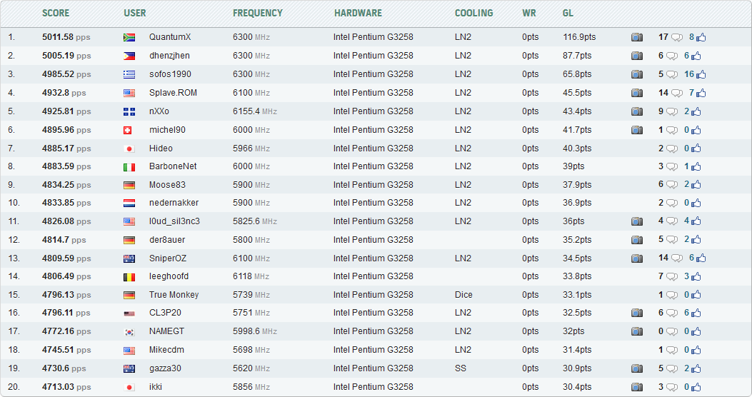 Конечно, не обошлось и без доли везения: QuantumX приобрел два процессора Intel Pentium G3258, и оба они показали отличные результаты под жидким азотом — 6100 МГц и 6300 МГц (чип из партии 3418C001).