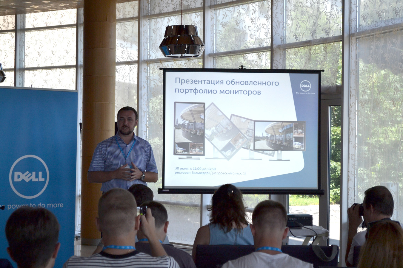 Вступительное слово взял Игорь Хамаза, менеджер по развитию бизнеса S&P (периферии и аксессуаров) в Украине, странах СНГ, Балтии и Венгрии. Обрисовывая положение Dell сегодня, он отметил, что общее падение сегмента ПК в целом и продаж периферии в частности практически не отразилось на компании. Рыночная доля мониторов Dell по-прежнему составляет 12%. Вероятно, причиной тому является устойчиво оформившаяся аудитория, предпочитающая исключительно продукцию этой отнюдь не дешевой марки. Компания же, в свою очередь, не ставит целью постоянное увеличение процента продаж, а вместо этого полностью сосредоточена на поддержании своей репутации производителя дорогой, но качественной продукции. К 2014 году Dell представлена во всех каналах сбыта, имеет разветвленную сеть сервисных центров и полностью выполняет обязательства по официальной трехлетней гарантии на свою продукцию.