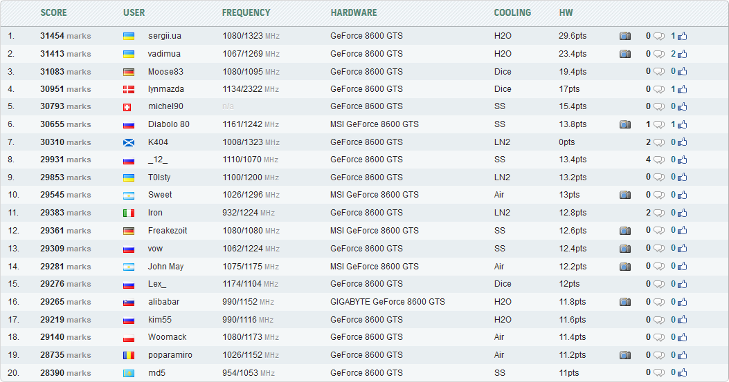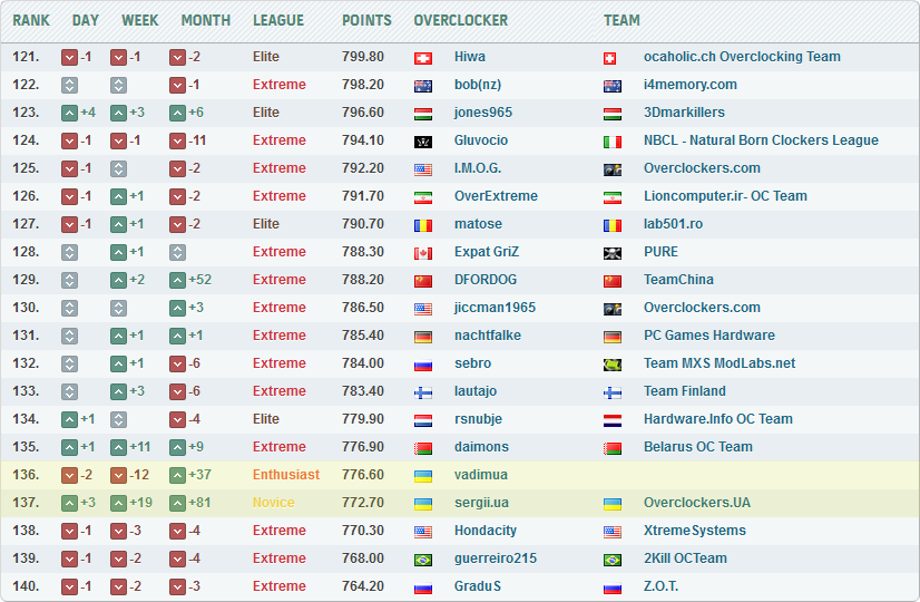 В настоящее время Sergii.ua соседствует с Vadimua на подступах к топ-100 глобального рейтинга HWBot.org. Украинские оверклокеры уже опережают таких известных энтузиастов разгона, как CherV (Гонконг), X-PowerX800Pro и Wytiwx (Китай), Cyclone (Украина), Gnidaol (Бразилия) и Deanzo (Новая Зеландия).