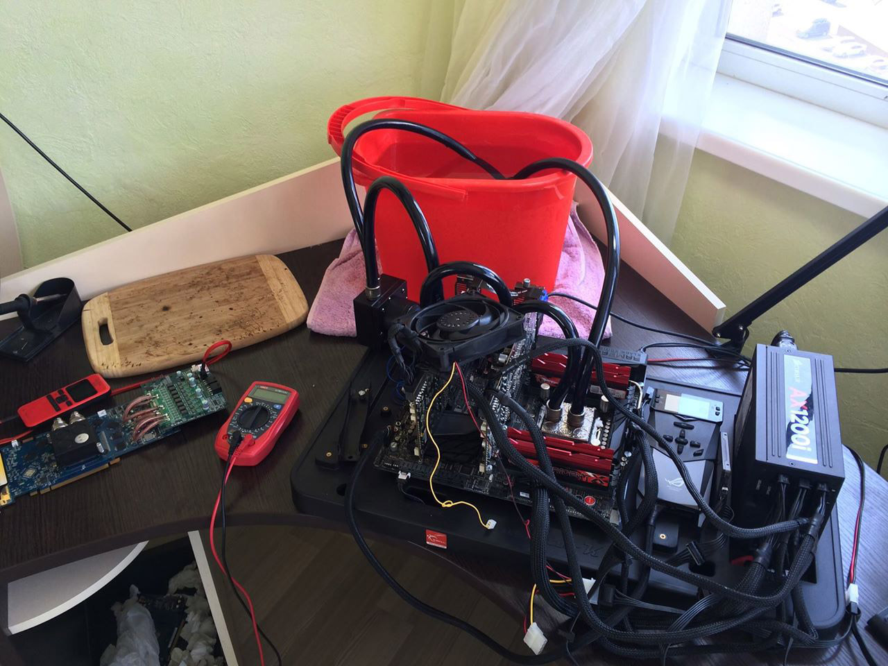 В отличие от некоторых конкурентов-азотчиков, в борьбе за высокие места Sergii.ua ограничился более скромным, но проверенным средством — СВО. Стенд также включал материнскую плату Asus Rampage IV Black Edition (чипсет Intel X79), шестиядерный процессор Core i7-3930K (@5,1 ГГц), 16 ГБ оперативной памяти DDR3 @2400 МГц, блок питания Corsair AX1200i, оверклокерский пульт Asus ROG OC Panel и водоблоки марки EK. Две видеокарты MSI Radeon HD 5870 функционировали на частотах 1100/4500 МГц (ядро/память).