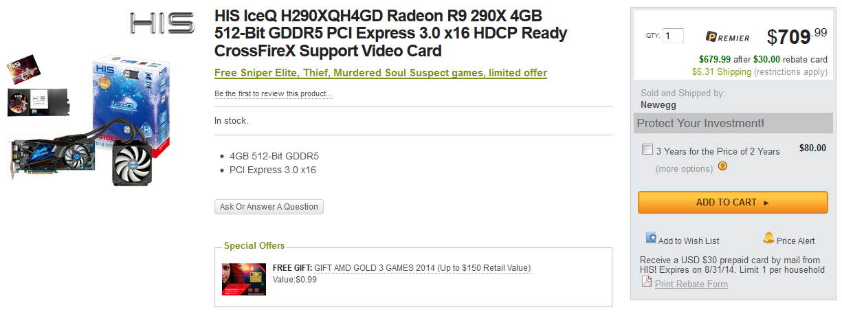 Представленная на днях видеокарта HIS IceQ R9 290X Hybrid в кратчайшие сроки появилась в розничной продаже, правда, пока только в США. Новинка обойдется самым нетерпеливым покупателям в 710 долларов (без учета 30-долларового рибейта и налога с продаж). К продукту интернет-магазин Newegg прилагает игры Sniper Elite 3, Thief и Murdered: Soul Suspect.
