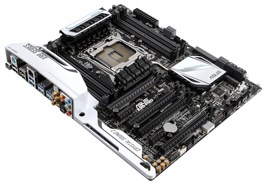 Аналогично «старшему брату» в лице X99-Deluxe, новинка получила весьма элегантные радиаторы и кожух панели I/O, окрашенные в белый цвет, а также нашумевший OC Socket. Помимо типичных для большинства плат LGA2011-3/X99 характеристик, устройство располагает двумя разъемами M.2 (только для PCI-E SSD), поддержкой 3-Way SLI/CrossFireX (x16/x16/x8) и модулей оперативной памяти DDR4-2133/…/3333 (до 64 ГБ). Отдельно стоит отметить звуковую подсистему Crystal Sound 2, основанную на кодеке Realtek ALC1150 и высококачественных японских конденсаторах.