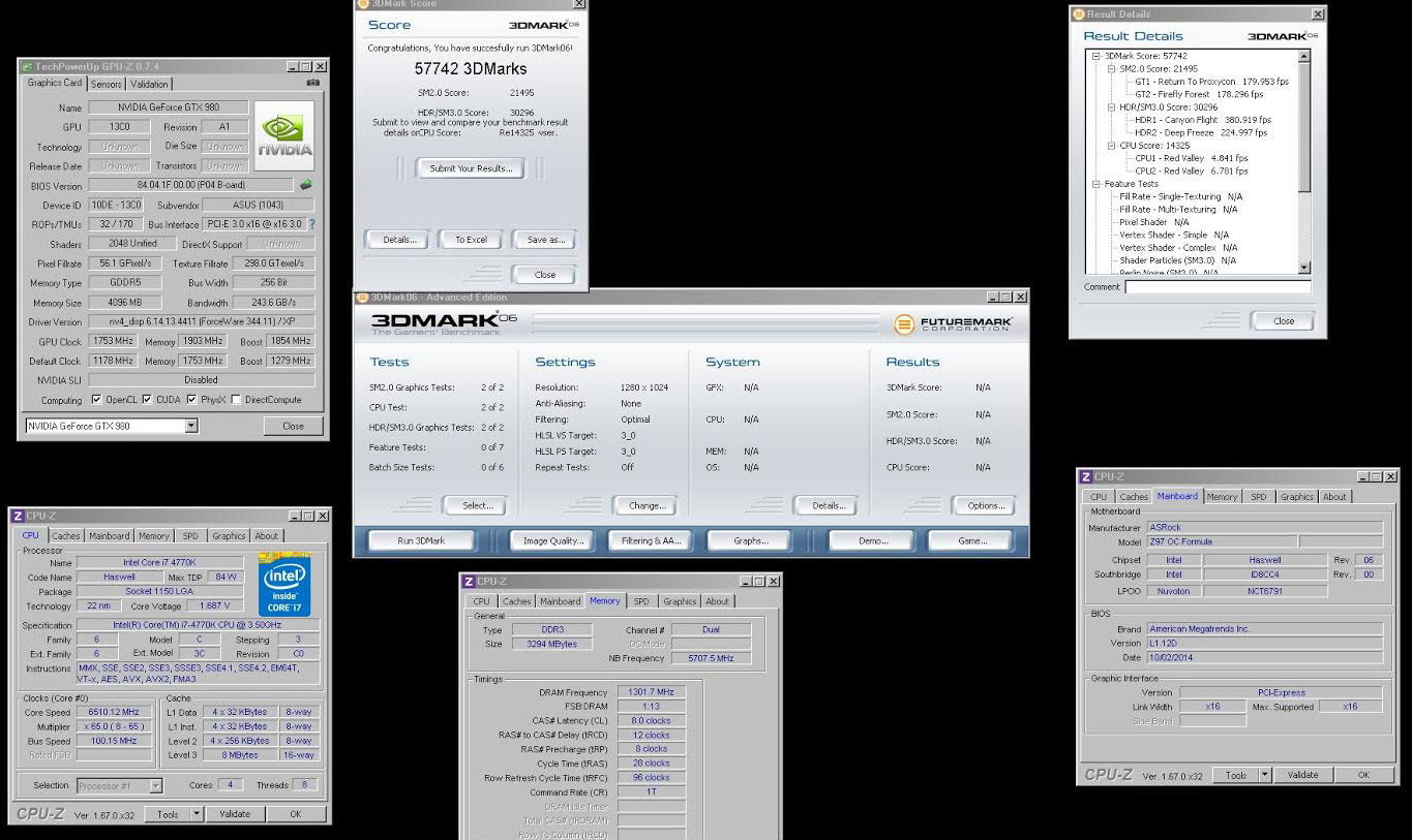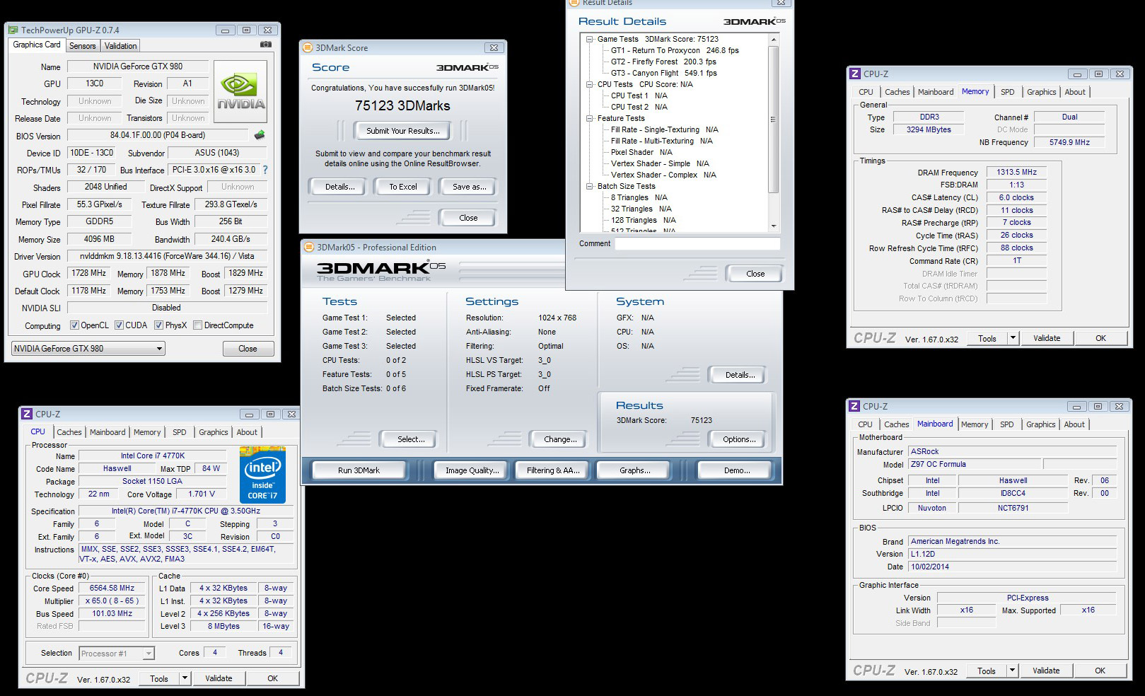 В ходе бенч-сессии 8 Pack задействовал материнскую плату ASRock Z97 OC Formula, четырехъядерный процессор Intel Core i7-4770K (@6510–6564 МГц), 4 ГБ оперативной памяти G.Skill Pi DDR3 @2603–2686 МГц, испарители для жидкого азота марок KingpinCooling (на CPU) и Der8auer (на GPU). Модули ОЗУ также охлаждались посредством LN2.