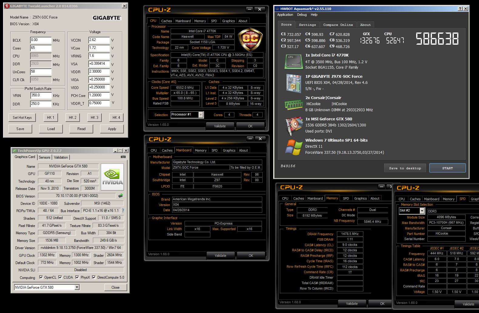 Sofos1990 продемонстрировал, что оптимальным выбором для Aquamark все еще является видеокарта GeForce GTX 580. Задействовав ее, а также отборный экземпляр процессора Core i7-4770K, греческий оверклокер набрал аж 586638 очков, значительно опередив 8 Pack. Недавний лидер HWBot Extreme League сегодня занимает высокое пятое место в Элитной лиге позади 8 Pack, Smoke, TeamAU и Vivi.