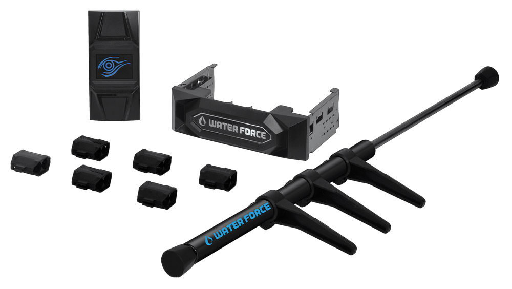 Gigabyte GV-N980X3WA-4GD комплектуется мостиком 3-Way SLI, 5,25-дюймовой панелью с логотипом Water Force и подпоркой для видеокарт.