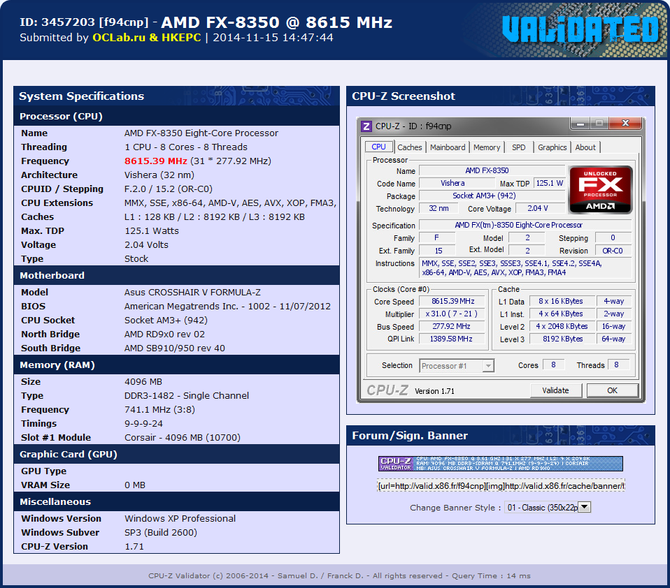 Slamms и Chi-Kui Lam разогнали процессор AMD FX-8350 до 8615 МГц