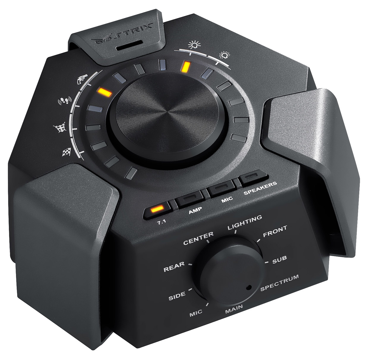 Вышеупомянутый USB-гаджет позволяет изменять режимы работы Strix 7.1, не отрываясь от игрового процесса или просмотра видео. С помощью небольших кнопок в передней части можно выключать и включать усилитель, микрофон, передавать вывод аудио на колонки.