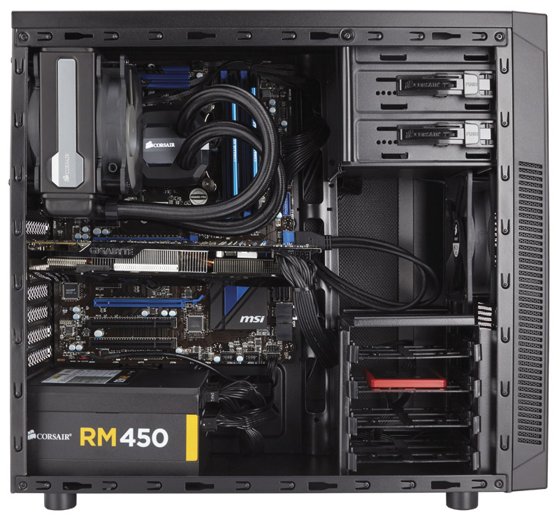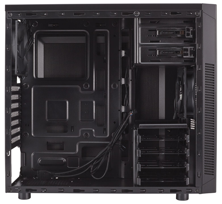 Внутри корпусов можно установить материнскую плату форм-фактора ATX, microATX или Mini-ITX, до семи карт расширения PCI-E (их длина не должна превышать 275 мм, если напротив находятся корзины для HDD), ATX-совместимый блок питания длиной до 230 мм, процессорный кулер высотой до 150 мм, два оптических привода или иных 5,25-дюймовых устройства, а также четыре накопителя типоразмера 3,5" или 2,5".