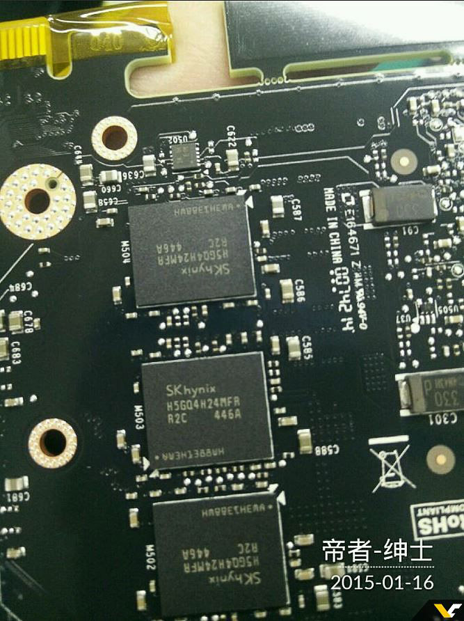 Образец видеокарты, которая может стать будущим Quadro M6000, GeForce Titan 2 или Titan X, оснащен 24 микросхемами памяти SK Hynix GDDR5 с маркировкой H5GQ4H24MFR-R2C. Объем каждого чипа равен 4 Гбит (512 МБ), эффективная частота — 7 ГГц. На PCB с маркировкой 180-1G600-1102-A04 также распаяны видеовыходы HDMI 2.0 и DisplayPort (3 ед.), DVI отсутствует.