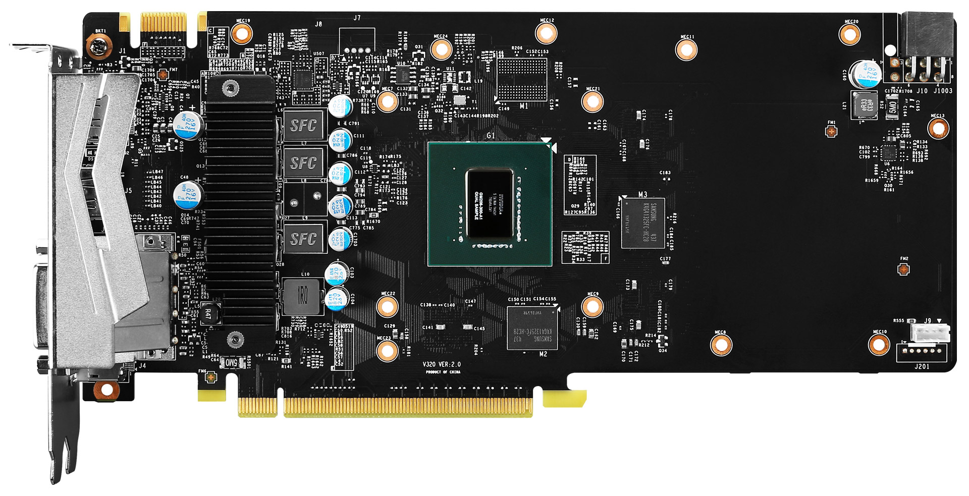 Внушительные размеры моделей собственного дизайна MSI несколько обманчивы, поскольку часть текстолита пустует (этим же грешат и другие производители). Отметим наличие у MSI GeForce GTX 960 2GD5T OC и GTX 960 Gaming 2G дополнительного радиатора для транзисторов системы питания, разъема SLI, видеовыходов Dual-Link DVI-I, HDMI и DisplayPort (3). Версия Gaming также имеет ребро жесткости и 8-контактный разъем питания (у большинства GTX 960 — 6-контактный).