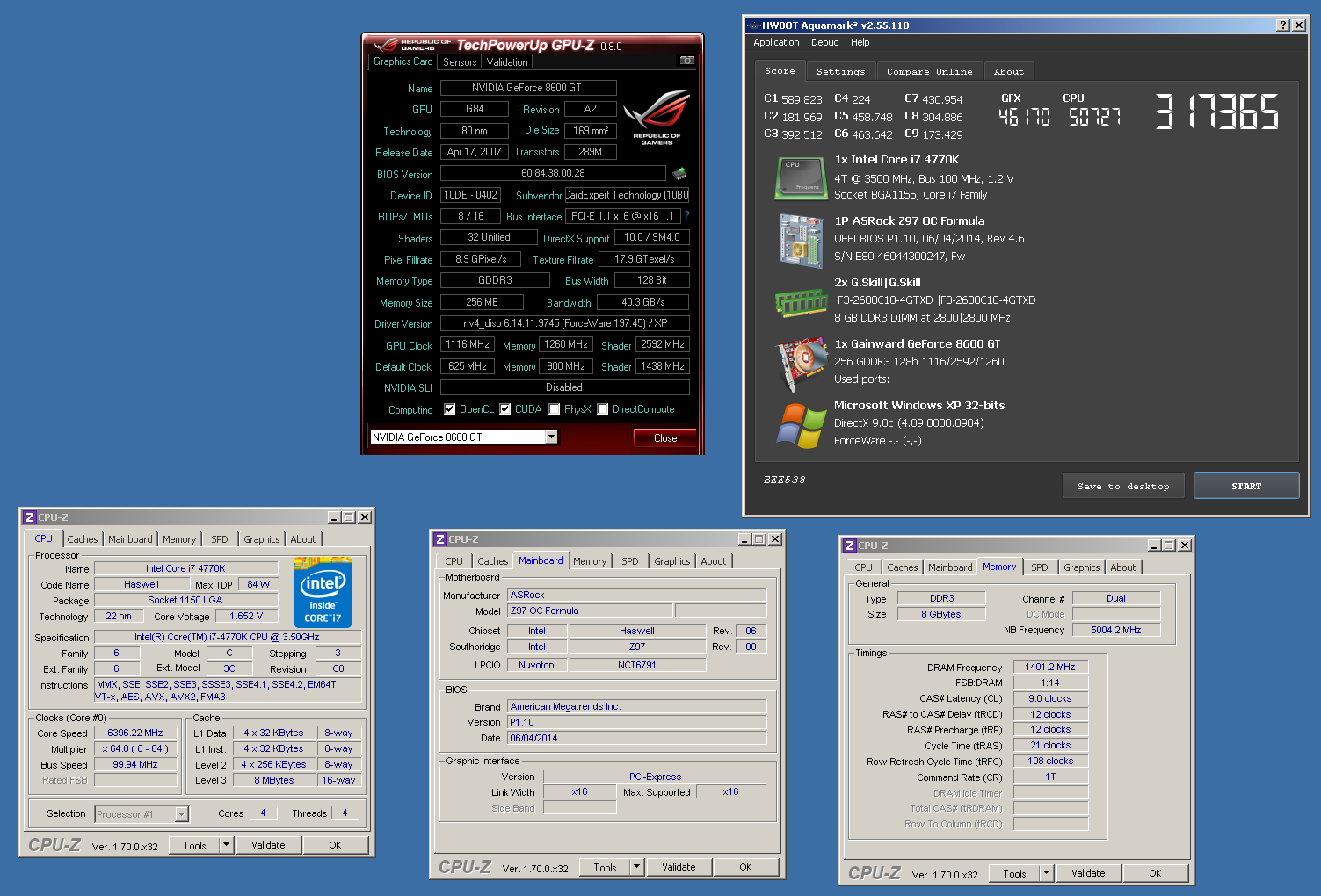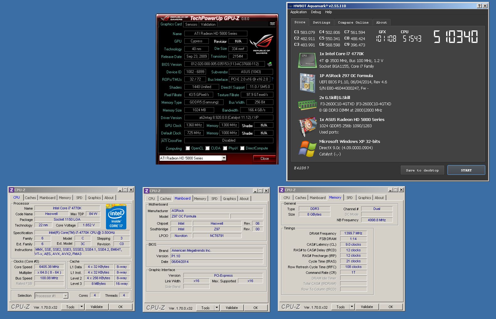 Вчера Sergii.ua показал два лучших результата в Aquamark — для систем с одной видеокартой GeForce 8600 GT (317365 очков) и Radeon HD 5850 (510340 очков). В обоих случаях частота процессора Core i7-4770K составляла 6,4 ГГц, частоты ядер графических адаптеров 8600 GT и HD 5850 — соответственно 1116 и 1360 МГц. Стенд был построен вокруг одной из лучших плат LGA1150 для экстремального оверклокинга — ASRock Z97 OC Formula.