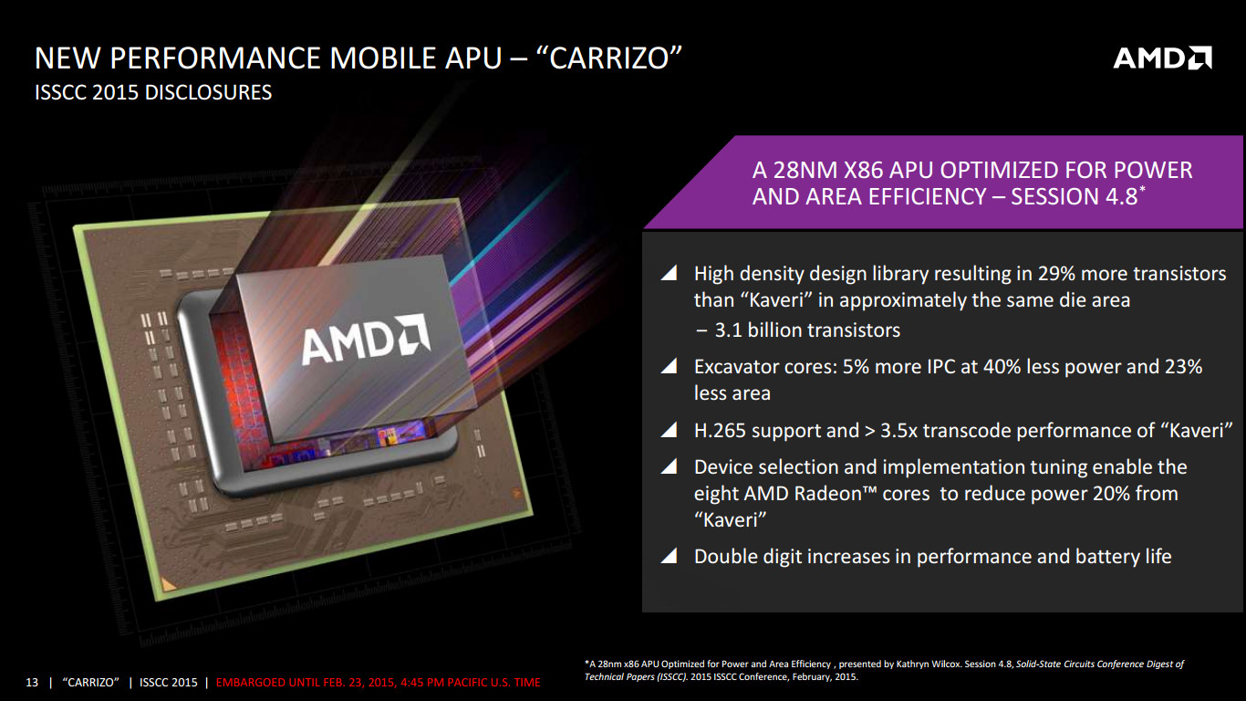 Официальный анонс процессоров AMD Carrizo для ноутбуков состоится во втором квартале текущего года.