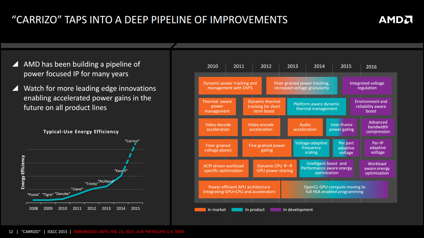 APU Carrizo обещают стать весьма конкурентоспособными чипами для мобильных систем. Их ключевые особенности и преимущества таковы: