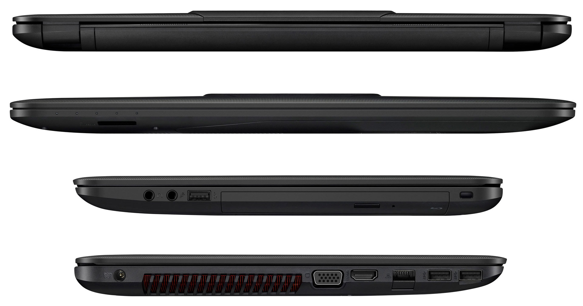 В спецификации Asus GL552 значится четырехъядерный процессор Intel Core i7-4720HQ (2,6/3,6 ГГц), видеоадаптер GeForce GTX 950M 4GB DDR3 на чипе GM107 и 15,6-дюймовый дисплей. Разрешение последнего может составлять 1366x768 пикселей (матрица TN) либо 1920x1080 (матрица IPS).