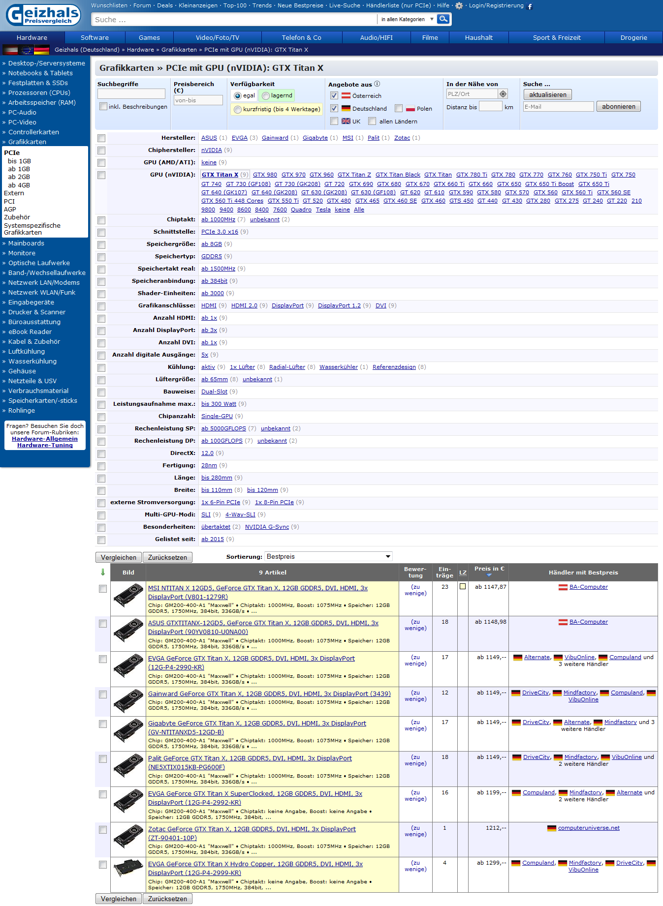 Западноевропейским покупателям придется выложить за Maxwell GM200 почти 1150 евро, что эквивалентно 1244 долларам американской валюты. В Украине GeForce GTX Titan X можно ожидать по цене от 35 тыс. грн (с учетом действующего 10% налога на импорт).