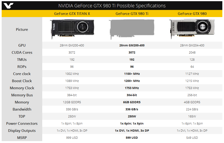 Полагаем, не обойдется без версий с альтернативной компоновкой PCB и дизайном системы охлаждения. Что немаловажно, минимальная стоимость GeForce GTX 980 Ti составит только 600 долларов США, а не $1000, как у Titan X.