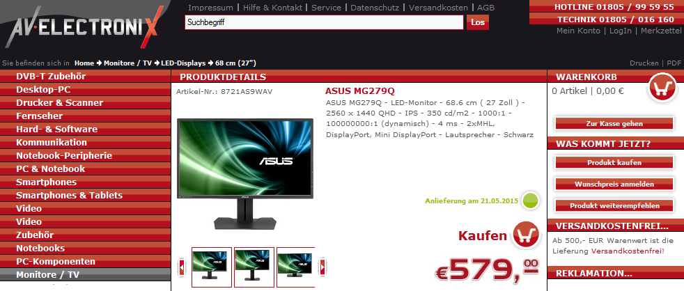 Еще до официального старта продаж стало известно, что сочетание у Asus MG279Q режимов 144 Гц и FreeSync будет недоступно. В частности, об этом пишет SweClockers и приводит в качестве подтверждения следующий скриншот: